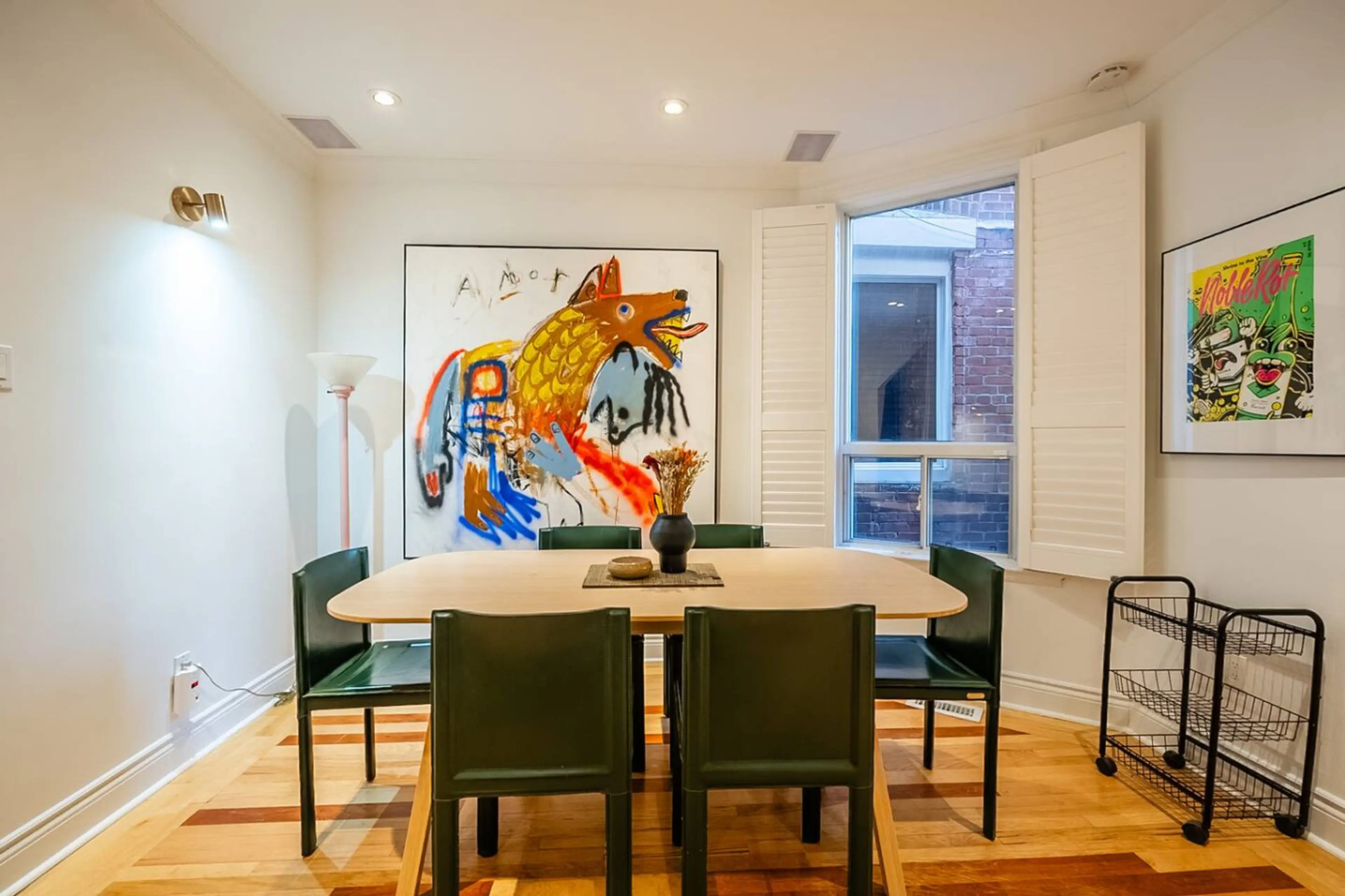 ✦ Welcome to this inviting Toronto home — perfect for families, professionals, or longer stays. Relax in the cozy living area with plush seating, curated bookshelves, and a smart TV. The kitchen features stainless steel appliances, a gas stove, and in-suite laundry. Enjoy meals in the art-filled din...