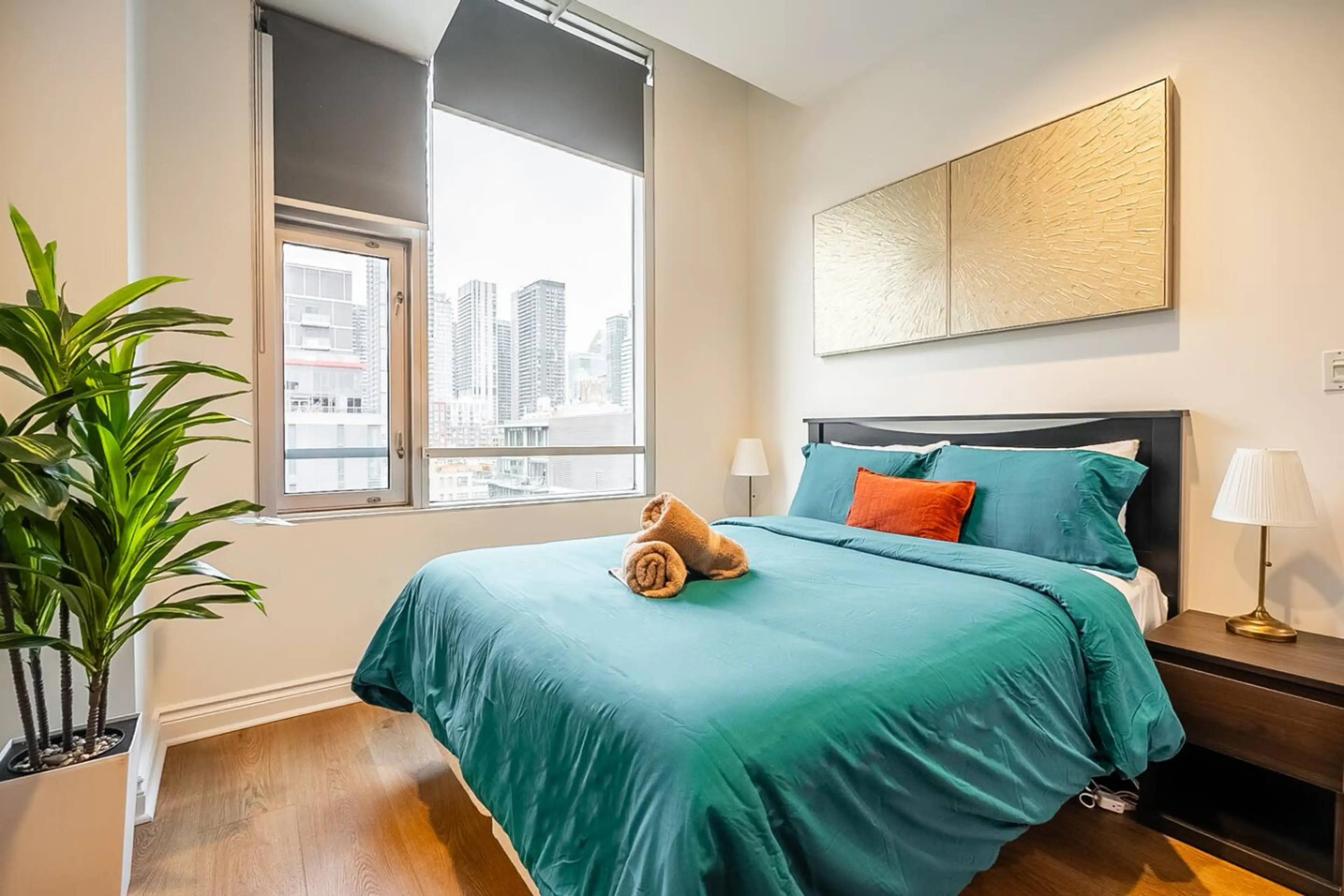 ✦ Welcome to The Artist Loft—your bright, modern 2-bedroom retreat! This stylish open-concept condo features soaring 12ft ceilings, hardwood floors, and large windows. Enjoy a spacious living area with a comfy sofa, large TV, and chic décor. The grand kitchen offers a large island, great appliances,...